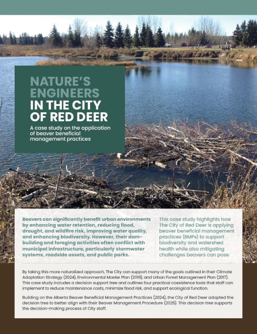Beaver Beneficial Management Practices (BMPs) are practices that reduce or remove risks of human-beaver conflicts associated with the management of beavers. Often a combination of strategies may be beneficial to address a particular issue or concern. The purpose of the Alberta Beaver BMPs is to provide information about available beaver management tools with the goal of improving implementation of beaver coexistence tools in Alberta. By improving human-beaver coexistence, challenges can be mitigated while still maintaining beavers on the landscape, supporting watershed and ecological health and the ecosystem services they provide.